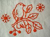 Questa tovaglietta natalizia è stata realizzata con ritagli di stoffa in puro lino, uniti da un merletto a uncinetto di mia invenzione